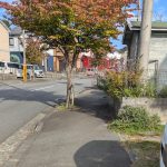 通学の為、歩いている歩道ですが、その家から枝が伸びて道を塞いで困っています。
